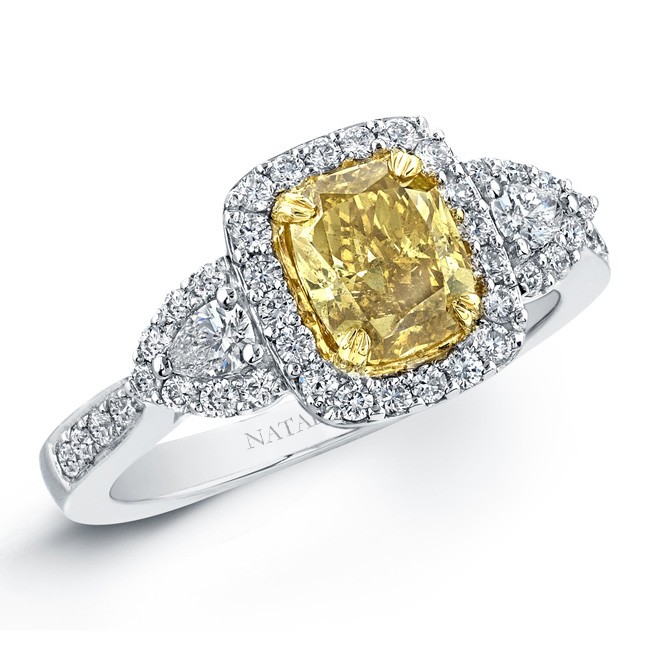 Yellow coloured engagement rings are great. For these, you can go for yellow topaz, orange topaz, amber, yellow sapphires and yellow diamonds. The yellow coloured engagement rings symbolize positive thinking, friendliness, enthusiasm and playfulness. This is a great choice for creative, adventurous, quirky and bubbly people.